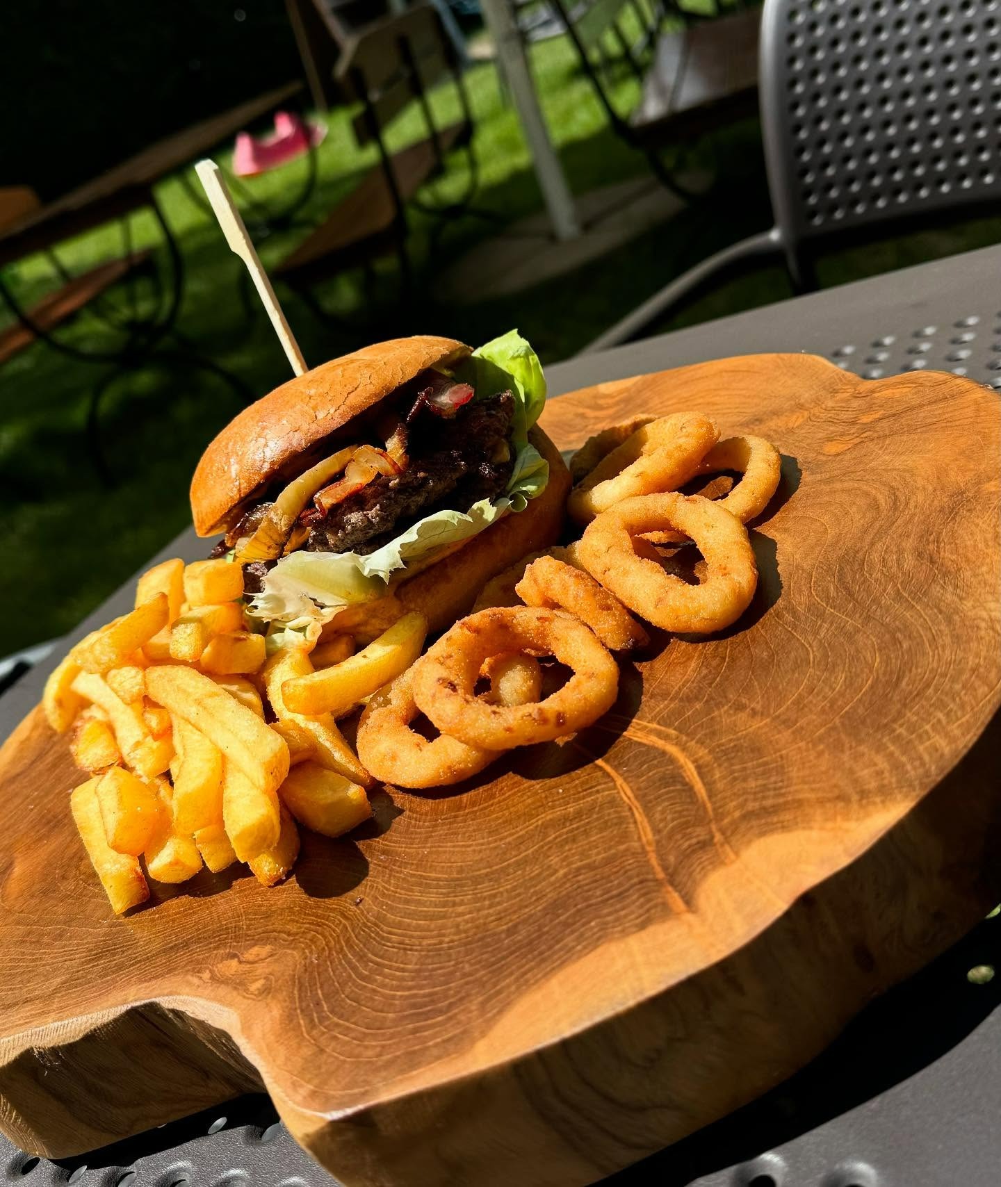Każdy burger to pełnoprawna uczta – chrupiący bekon, rozpływający się ser, pikantne jalapeño, karmelizowana cebulka… a może wege z pazurem? Mamy to wszystko – i zawsze z konkretnym dodatkiem frytek 🍟.